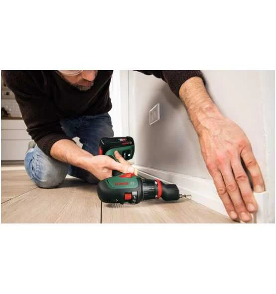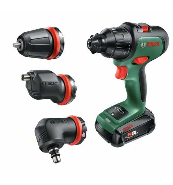 Akku-Zweigang-Schlagbohrschrauber AdvancedImpact 18. Schlagbohrschrauber mit einfachster Bedienung und großer Vielseitigkeit. Intuitive Auswahlmodi sowie automatische Gangwechsel passen für jede Anwendung. Das Schaltsystem bietet einen Richtungswechsel mit nur einem Klick. Richtungsanzeige mit LED-Licht. QuickSnap-Winkel- und Exzenteraufsätze als Ideallösung für schwer zugängliche Bereiche. Kraftvoll, kompakt und langlebig dank bürstenlosem Motor. Schrauben, Bohren in Holz und Metall, Schlagbohren in Ziegel- und Kalkstein. POWER FOR ALL: Ein Akku für das komplette Home & Garden-Gerätesystem. Syneon Technology steuert den Energieverbrauch für optimale Effizienz und längere Laufzeit. Im Lieferumfang enthalten: 1x Akkupack PBA 18 V 2,5 Ah W-B, Ladegerät AL 1830 CV (1 600 A00 5B3), Winkelaufsatz, Exzenteraufsatz, Tragekoffer